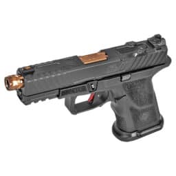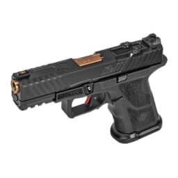 The stainless steel slide and chromoly barrel wear the most advanced black DLC (Diamond-like-Carbon) physical vapor deposition finish available. This finish has chromium and tungsten underlayers for long-lasting corrosion and abrasion resistance.