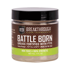 Battle Born Grease is designed to be the highest quality, most advanced, lubricant available on the market. Our firearm grease is formulated with pure synthetic oils, shear stability additives and Sub-Micron size PTFE to protect against wear and corrosion from friction and moisture while withstanding a broad range of temperatures. (Operating Range -75° to +510°F).